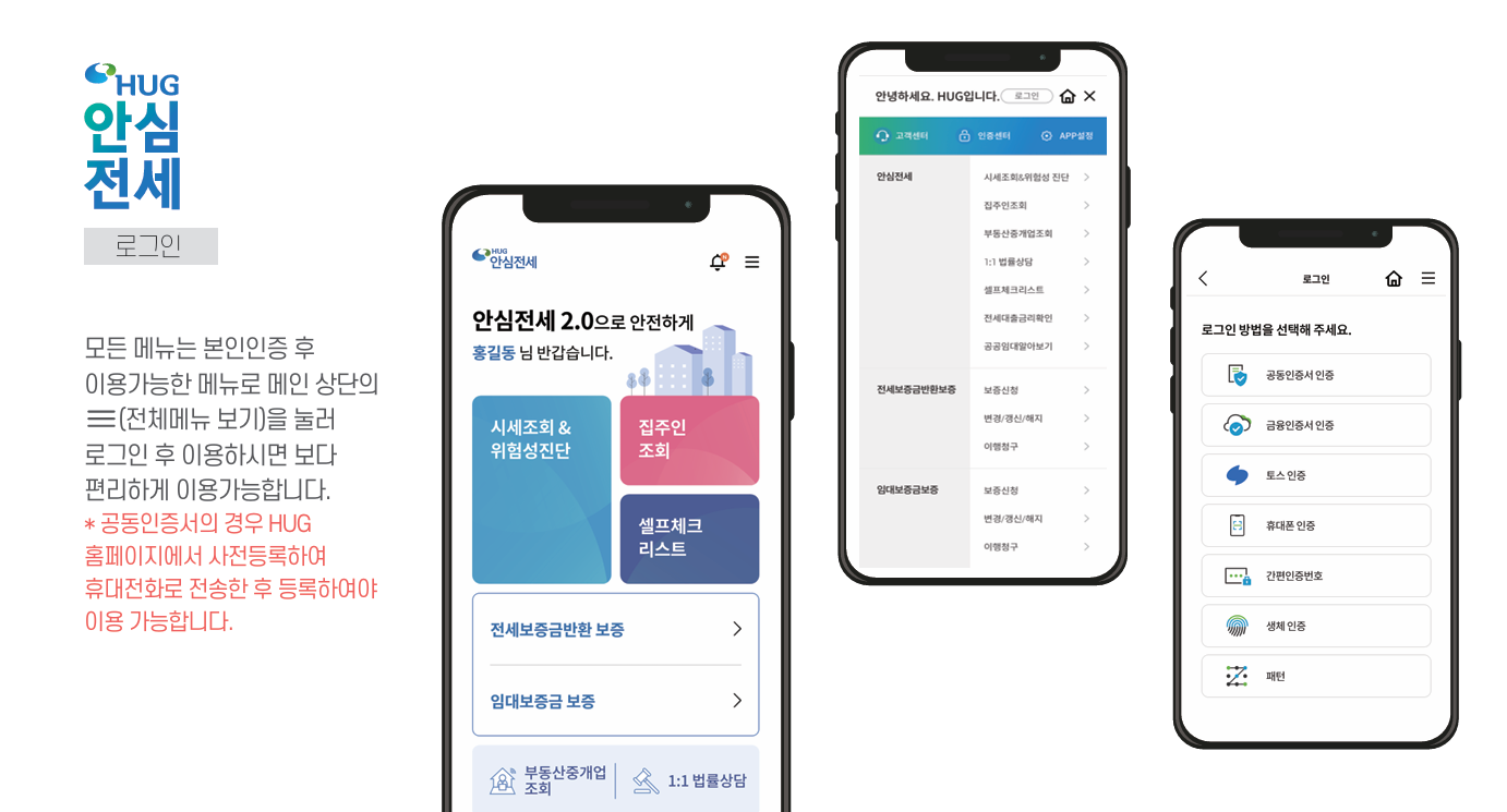 * 무료 1:1 법률상담 * 공인중개사 정보조회(경력정보 포함), 보증료 계산기 등 앱을 통해 전세보증 가입 가능